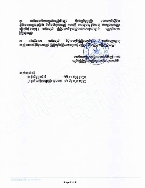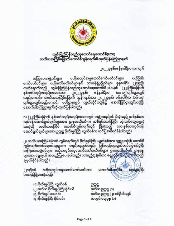 တပ်မတော်ကာကွယ်ရေးဦးစီးချုပ် ဗိုလ်ချုပ်မှူးကြီး မင်းအောင်လှိုင်၏ နိုင်ငံရေးဆွေးနွေးခြင်း ဖိတ်ခေါ်ချက်သည် လက်ရှိ အထွေထွေနိုင်ငံရေးအကျပ်အတည်းဖြေရှင်းနိုင်ရေးနှင့် ဖယ်ဒရယ် ပြည်ထောင်စုတည်ဆောက်ရေး အတွက် ရည်မှန်းပါက ကြိုဆိုကြောင်း သျှမ်းပြည်ပြန်လည်ထူထောင်ရေးကောင်စီ RCSS က သတင်းထုတ်ပြန် လိုက်သည်။